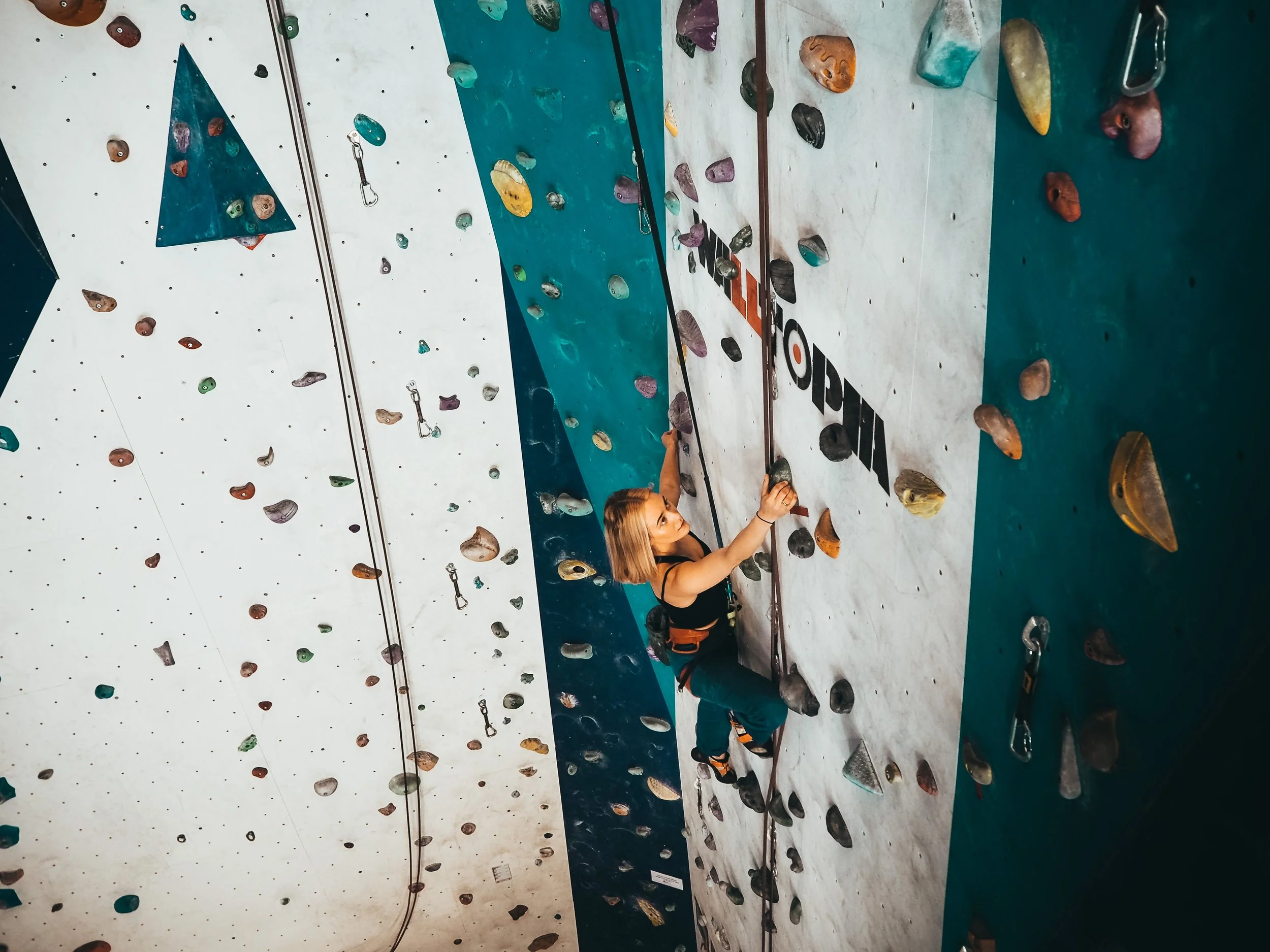 Aktivitet i klatreveggen: klatrequiz med spørsmål om museet