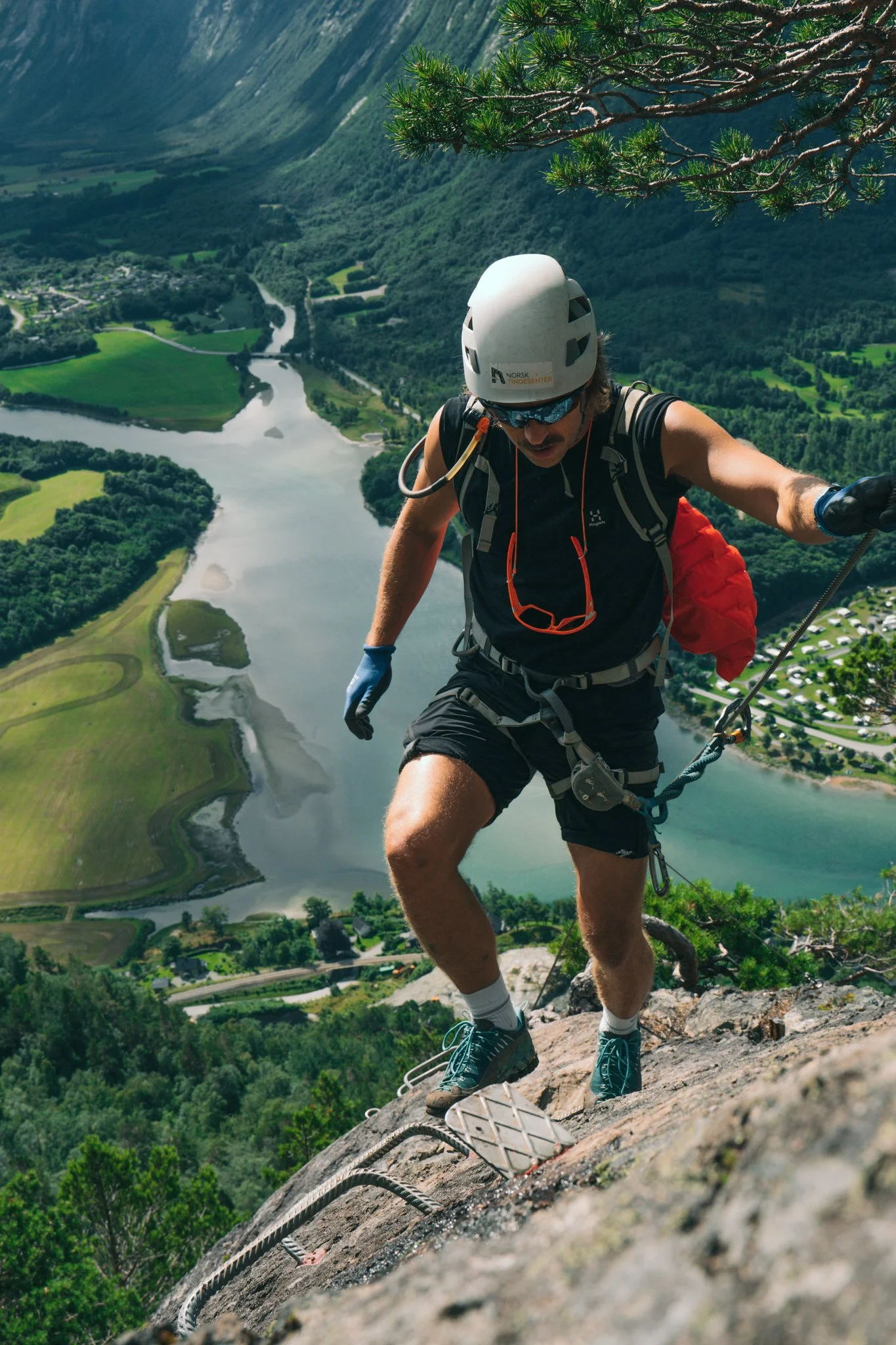 Turen kan gjennomføres sammen med våre erfarne guider, du kan velge å leie utstyr hos oss eller gå med eget godkjent Via Ferrata-utstyr dersom du har erfaring.